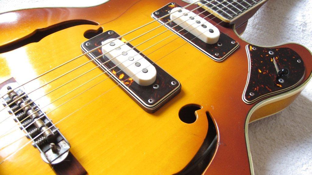 La Domino (# 40E2) Dawson es una guitarra al estilo 335, copia de la mítica Fender Coronado, Full hollow bodie.